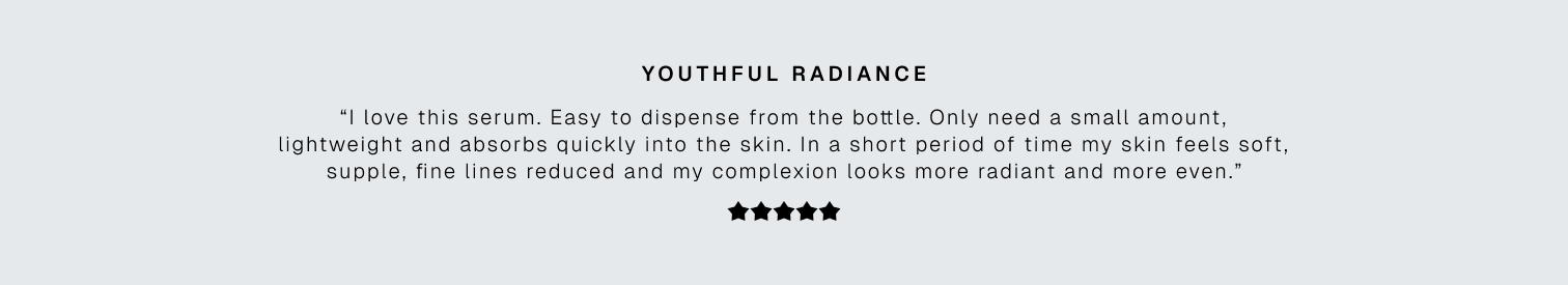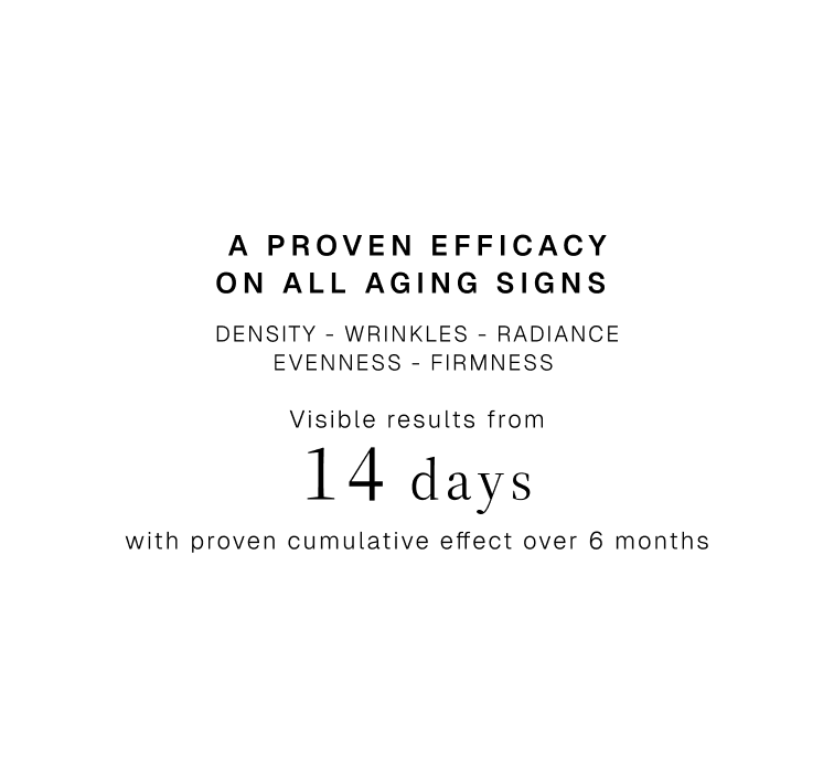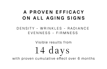Prevents and corrects all signs of aging : Density Radiance Firmness Wrinkles Evenness